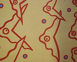 Et maleri på ca. 2×2 meter, der viser to næsten identiske, farverige figurer, der bevæger sig mod hinanden. Titlen refererer til noget, der kan læses både forfra og bagfra.