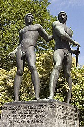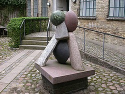 ◦ Roar og Helge: Ved indgangen står Johan Galsters statuer (1939) af Roskildes sagnomspundne grundlæggere.