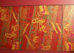 I modsætning til mange af de nyere gavlmalerier i Roskilde, der er meget fortællende og figurative, er Poul Reimers værk abstrakt og modernistisk.
