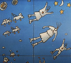En stor, stjerneagtig og farverig skulptur skabt af sammensmeltet industrielt materiale som plastikspande og indkøbskurve. Den kan tolkes både som glad og festlig og som farlig og aggressiv, en kommentar til overskudssamfundet.