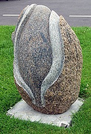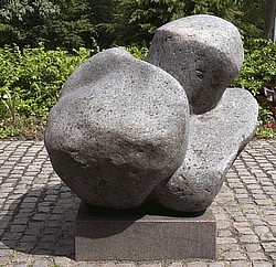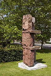 Form: Skulpturen er ikke strengt figurativ, men har organiske former, der kan minde om naturens egne formationer, som er slebet af vind og vejr gennem årtusinder.